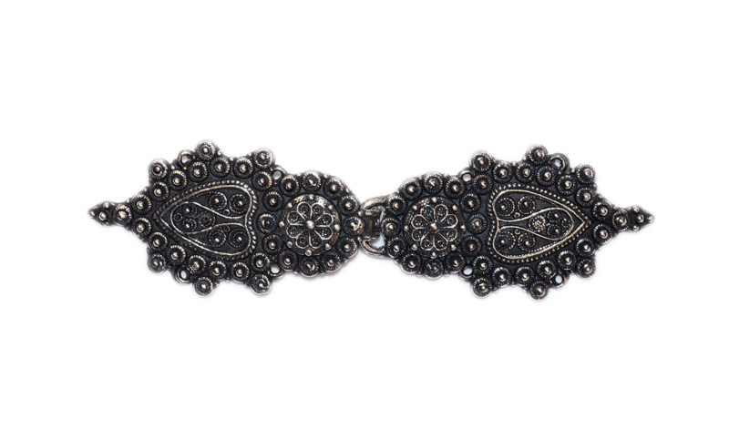 Vakker håndstøpt hekte, produsert av Tinn-Per i Norge. Perfekt til festdrakt, belte, og elegante kjoler.