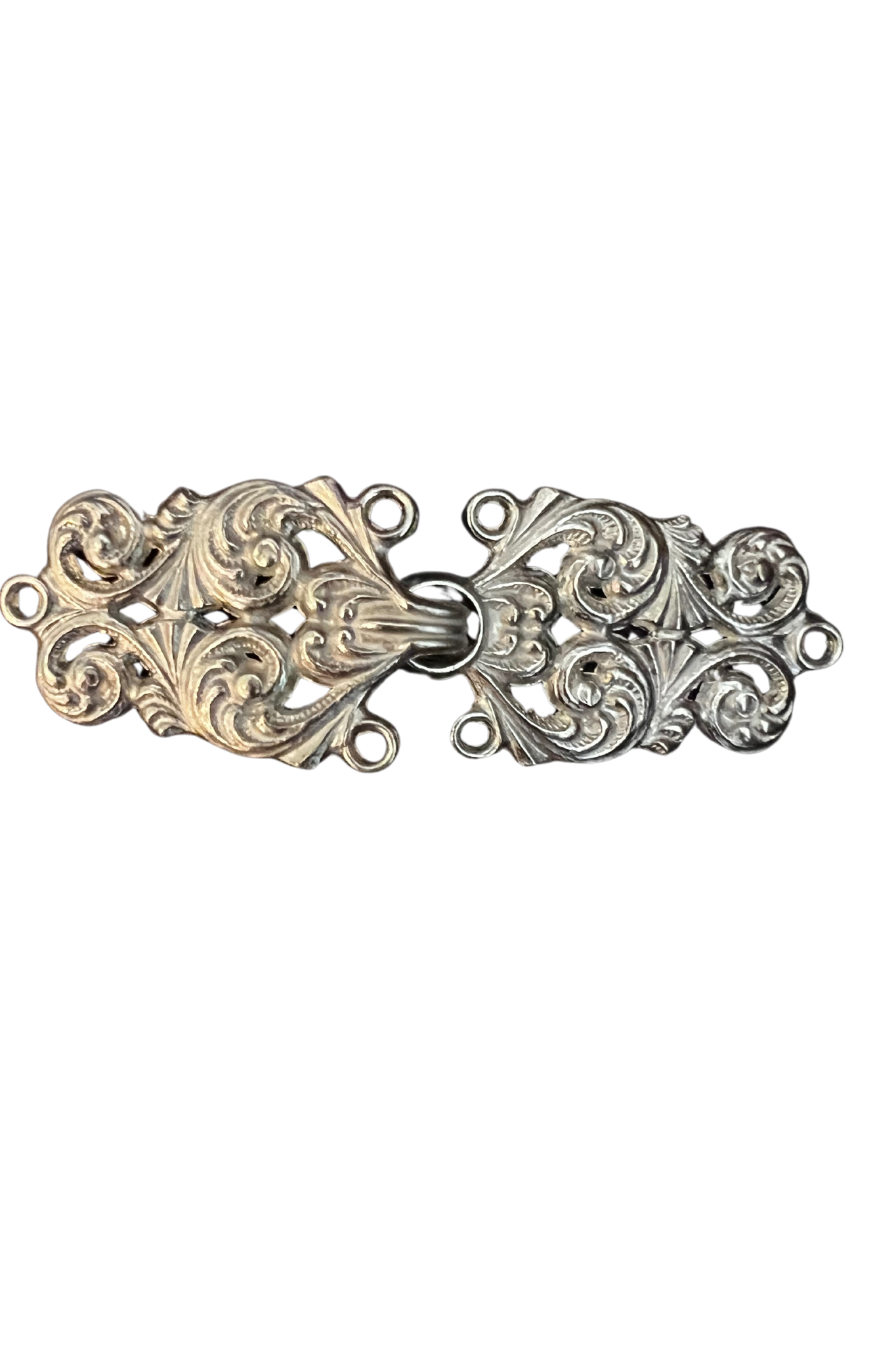 Vakker håndstøpt hekte, produsert av Tinn-Per i Norge. Perfekt til festdrakt, belte, og elegante kjoler.